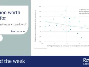 Each dot in this chart shows the return of UK defensive sectors during each of the past three economic recessions (above zero on the vertical axis is an outperformance versus the overall market, and the further to the right on the horizontal axis the more expensive). Read more on why we think now is a good time to move in to less economically sensitive sectors in ‘A solid defence’, one of the articles in our latest InvestmentInsights.